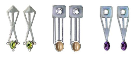 "LITTLE EARS" THREE DESIGNS: X EARS / LINES / TRIANGLE SET WITH VARIOUS STONES & USUALLY AVAILABLE IN: Onyx / Carnelian / Garnet Lapis / Peridot / Amethyst Moonstone / Blue Topaz Catseye